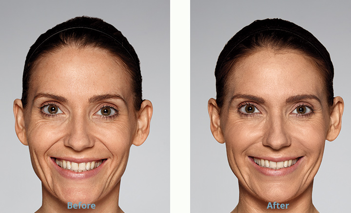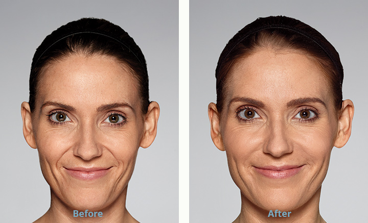 Restylane® Refyne is made using XpresHAn Technology™, which allows the HA to integrate deep into the tissue but still move with your expressions. It is intended to diminish moderate to severe nasolabial folds and marionette lines. The product is injected deeper than other fillers to provide visible lifting and tightening while maintaining your natural facial expressions. The unique cross-linking of this HA gel ensures you will still smile, frown and pucker after treatment. With this product, you’ll look like you, only younger.